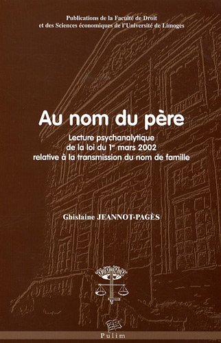 Here you will find list of Au nom du père : Lecture psychanalytique de la loi du 1er mars 2002 relative à la transmission du nom de famille PDF Book Download free ebooks online for read and ... Enjoy reading free Kindle Au nom du père : Lecture psychanalytique de la loi du 1er mars 2002 relative à la transmission du nom de famille PDF Book Download pdf ebooks online now.
