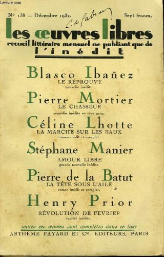 Free Les oeuvres libres n° 138. le reprouve par blasco ibanez suivi de le chasseur par pierre mortier suivi de la marche sur les eaux par celine lhotte suivi de amour libre par stephane manier suivi de la tete sous l'aile par pierre de la batut. PDF Download